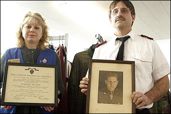 Personnel at the Salvation Army, Capt. Ron Heimbrock and Darlene Pelkey, were aware of the importance of that certificate, and they were upset to think of it as discarded along with things  of no value. They launched a search that eventually involved many other folks, and the combined effort led to members  of Sgt. Owen’s family who honor his memory. One of them has custody of the medal itself, and she treasures it.