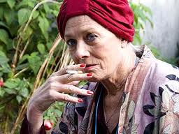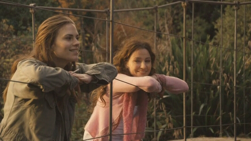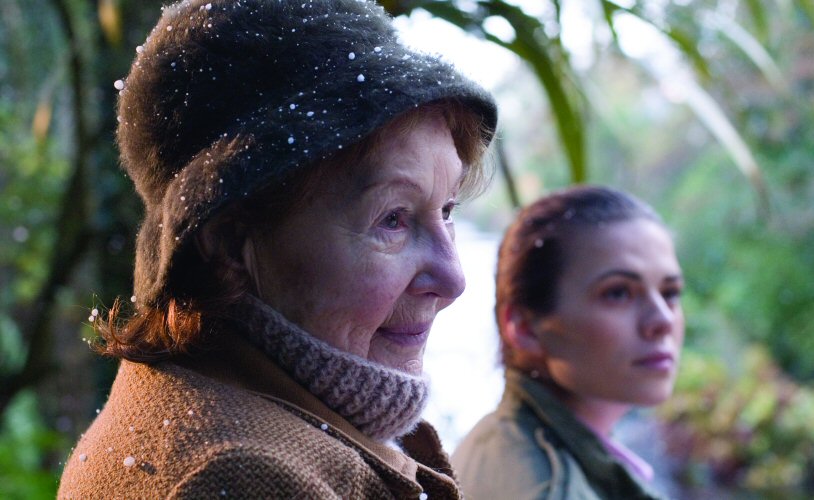 I can’t speak for the short story, but the film is predictable. Thirty-something Kate Harris (Orla Bradley) runs a residence that is occupied by older people, including four who are particularly nasty. Kate’s sister, Ellie (Hayley Atwell), appears unexpectedly to ask Kate to help her finance a trip around the world Ellie is planning with her boyfriend. Kate clearly doesn’t approve of Ellie’s lifestyle but grudgingly gives her a job cleaning the house and attending to the needs of the residents. Ellie develops an interest in sweet, fragile Alice Peterson (Joan O’Hara), and tries to take the edge off Alice’s loneliness — with a little smoke as part of the remedy.
