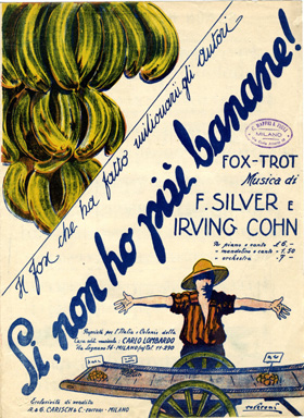 As serious as this situation is, I can’t hear about it without thinking of the novelty song, “Yes, We Have No Bananas,” which was written by Frank Silver and Irving Cohn in 1922 for the Broadway revue “Make it Snappy.” Eddie Cantor sang it in that show. Nonsense songs were very popular then and down through the 1950s, and Billy Jones’s recording of this tune was the number-one song in the nation for five weeks in 1923. The origin of the title and first line of the song is uncertain, but the lyrics as a whole may have been inspired by a similar banana blight that originated in Suriname and by the 1920s reached the Caribbean and Central America.As the illustration on the sheet music suggests, this song was part of a genre of entertainment that depended on making fun of immigrants. The lyric tells of a Greek man who owns a fruit store and answers any question in the same fashion: “Yes, we have no bananas.”