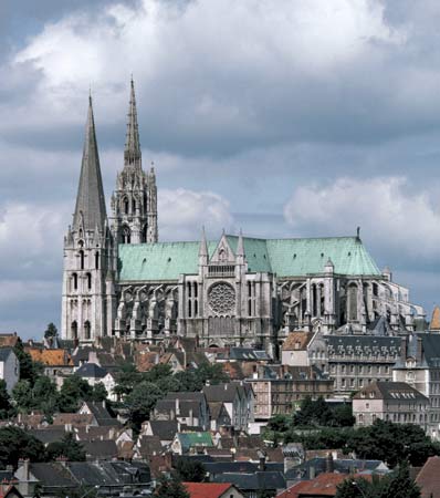 One of the rewards of research, for me, is so often finding what I wasn’t looking for. For example, I’m viewing Father Robert Barron’s video series, Catholicism, with a group of adults at my parish. One of the episodes in which Father Barron discusses Mary, the mother of Jesus, was filmed in part at the Basilique Cathédrale Notre-Dame de Chartres, which is located about fifty miles southwest of Paris. I’m not a student of architecture, but I have read that this church is regarded as the epitome of French Gothic design. There have been several, perhaps as many as five, churches on the site, and the present one was built between 1194 and 1250. There has been no appreciable construction since then. The structure is four hundred thirty feet long, one hundred five feet wide, and one hundred twenty feet high to the roof of the nave. The higher of its two towers is three hundred and seventy-one feet, and that feature of the church led to one of those stories of solitary heroism that characterize war — in this case, World War II.