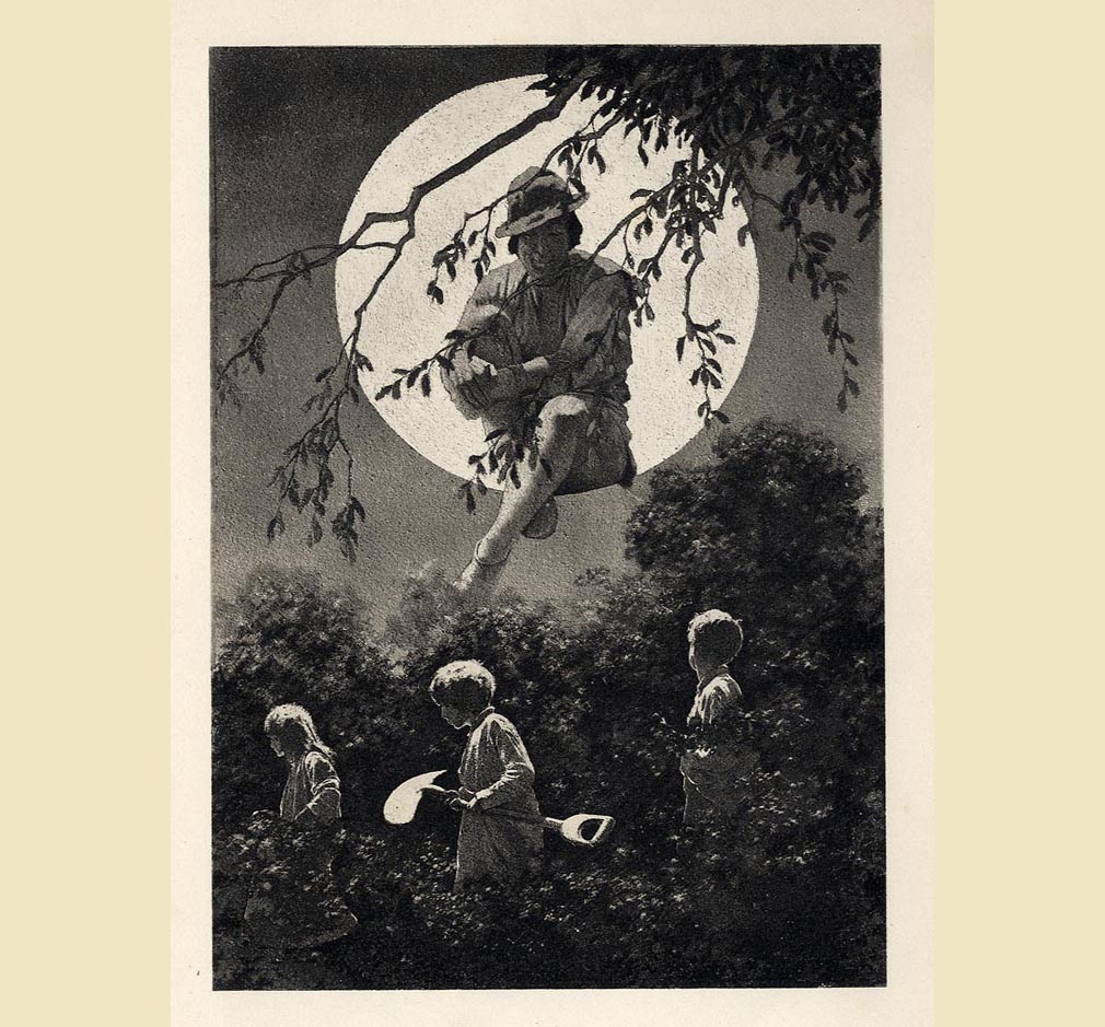 As we turned to go, the man in the moon, tangled in elm-boughs, caught my eye for a moment, and I thought that never had he looked so friendly. He was going to see after them, it was evident; for he was always there, more or less, and it was no trouble to him at all, and he would tell them how things were still going, up here, and throw in a story or two of his own whenever they seemed a trifle dull. It made the going away rather easier, to know one had left somebody behind on the spot; a good fellow, too, cheery, comforting, with a fund of anecdote; a man in whom one had every confidence. – Kenneth Grahame, “Dream Days.”