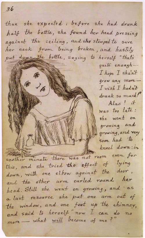 This poem, which Carroll meant as a parody of overblown poetry and pointless criticism, has been subject to so much serious study that it’s a shame Carroll didn’t live to see it. G.K. Chesterton remarked on this in 1932: “Poor, poor, little Alice! She has not only been caught and made to do lessons; she has been forced to inflict lessons on others.”