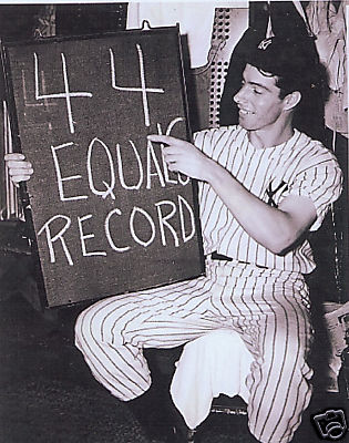 But the primary reason for the aura around Joe DiMaggio may be the record he set 60 years ago this season — the record that was the occasion for Kennedy’s book. In the 1941 campaign, DiMaggio got a base hit in 56 consecutive games.
